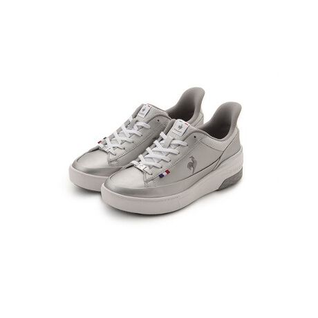 すっきりとしたシルエットとシルバーカラーでスタイリッシュな足元に導くスニーカー。厚底のヒールアップ形状ながら軽量性や屈曲性にこだわり、低反発インソールでより快適な履き心地を叶えます。突然の雨にも対応できる晴雨兼用も嬉しい1足です。
