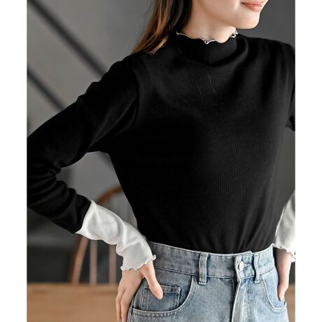 配色メロープチハイネックカットソー