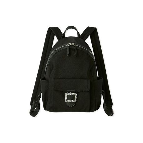 正面にきらりと光るランダムビジューアイコンがラグジュアリーな印象の、高密度ナイロンリュックです。