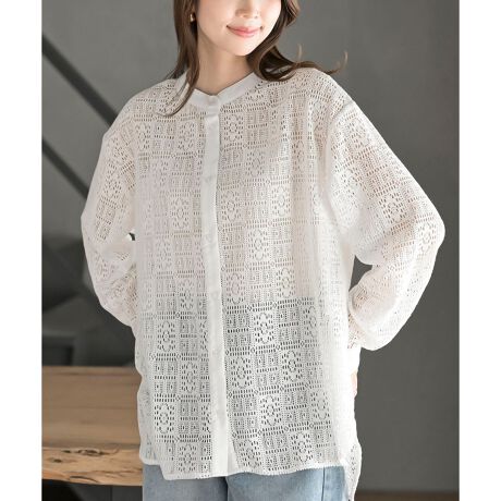 レースノーカラーブラウス