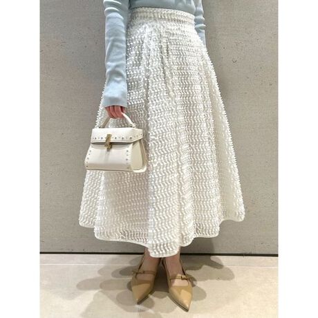 リボンのようなジャガード素材を使用したタックスカート。