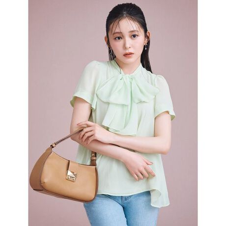 CELFORDを代表するボウタイリボンブラウスを、軽やかなハーフスリーブをフレアシルエットで新鮮に仕立てました。