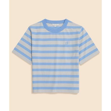 メンズで毎年ご好評いただいているヘビーウェイトTシャツが、ウィメンズラインナップに加わりました。やや軽めで硬すぎない生地を採用し、女性の方にも着やすいナチュラルな雰囲気に調整しています。ゆったりとしたサイズ感と長めの袖丈が、リラクシーなムードを醸し出す一枚です。永遠の定番としてタイムレスに愛用できるマリナーストライプ柄。しっかりした厚みのある生地なので洗濯にも強く、デイリーに活躍します。