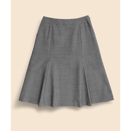 優れた吸水速乾性を持つ高機能ポリエステル糸クールマックスにウールをブレンドした生地を使用し、さらっとした快適な着心地のフレアスカートに仕立てました。ヒップ回りを程よくフィットさせ、フレアの位置をやや下げることで腰回りにボリュームの出すぎないすっきりしたシルエットにしました。シルエットに響きにくいスラッシュポケット付きです。無地感覚で着こなせる端正な表情が、ビジネスからオケージョンまであらゆるシーンに品格を纏わせます。
