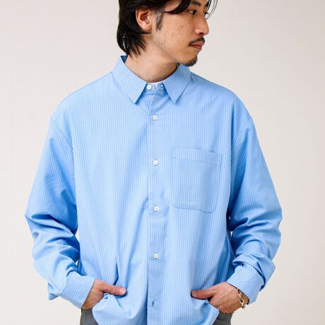 ・ルーズシルエット+ベーシックなレギュラーカラーで、1枚着でも羽織りでもサマになる万能シャツ。