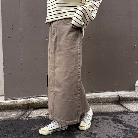 トップスをインするとよりきれいめに、アウトでもバランスよく着られて着回ししやすいです◎