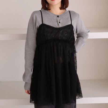 ・シアー感のあるレースキャミは重ねるだけでトレンド感を楽しめるデザイン