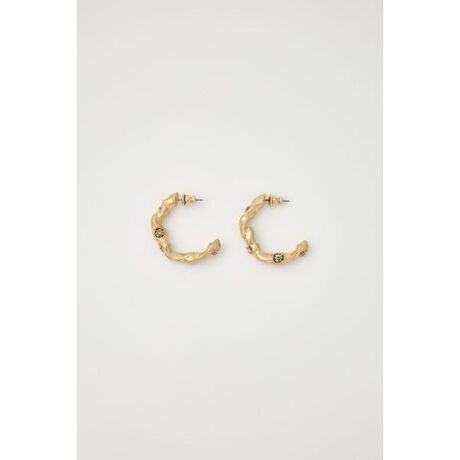 【GEM HOOP EARRINGS/ジェムフープイヤリング】■ポイントシルバーリングのようなボコボコとした凹凸シルエットが印象的。動くたびにキラキラストーンが光を集め、耳元に立体感と華やぎを与えるピアスです。■ディテール表面に表情のあるボコボコ加工を施したシルバー素材をベースに、透明度の高いストーンをポイント使い。軽量で長時間でも快適に着用できるデザインに仕上げています。■スタイリングミニマルなトップスやジャケットスタイルに合わせると、ピアスの立体感が際立ち上品なアクセントに。カジュアルにもフォーマルにも馴染む万能アイテムです。■商品のお気に入り登録お気に入りアイテムの再入荷・在庫1点などの通知を受け取ることができます。■ブランドのお気に入り登録新作アイテムの入荷や人気アイテムの再入荷、おすすめトピックスなど、いち早くブランドの情報を受け取ることができます。[注意事項]※画像の商品はサンプルです。実際の商品と仕様、加工が若干異なる場合があります。※画像の商品は光の照射や角度、お使いのモニター環境により、実物と色味が異なる場合がございます。※着用、お取り扱いの際は、アテンションタグをご確認ください。
