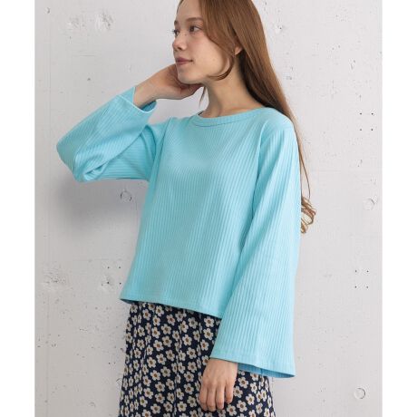 古着のミリタリーインナーのような中肉リブを使用したトップス。袖のフレアデザインがさりげないアクセントになり、1枚着としても着映えするアイテムです。長めのインナーを合わせたレイヤードスタイルもおすすめ。身頃はすっきりとしたシルエットに仕上げているため、ボリューム感のあるボトムスとも好相性です。
