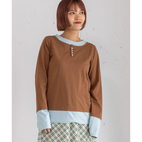 レイヤード風ヘンリーネックトップス