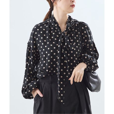 落ち感もありグッと華やかな大人の印象になるボウタイブラウス。