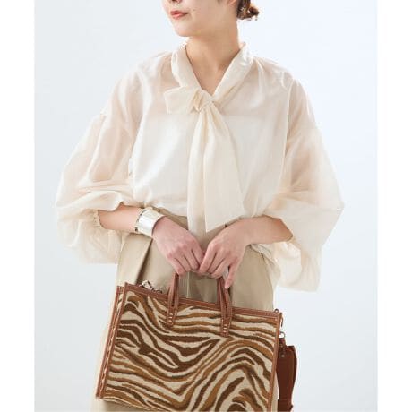 落ち感もありグッと華やかな大人の印象になるボウタイブラウス。
