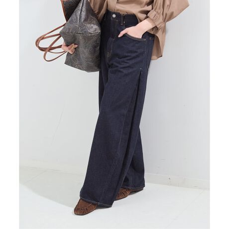 今年取り入れたいNEWデニムはサイドの深く大胆なタックデザインがポイント。