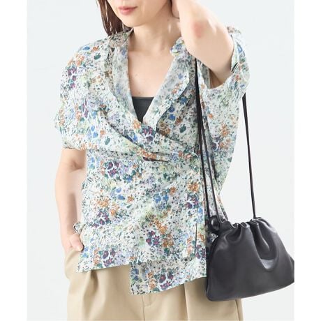 柔らかく着心地の良い涼しい素材を使用し、袖口にタックを入れて女性らしさと大人っぽい雰囲気のシャツブラウス。