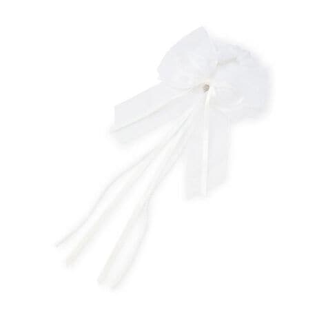 ボリュームのあるシャイニーなオーガンジーリボンのシュシュです。リボンの下バネやパールチェーンを長くデザインしたので動くたびに揺れ、ポニーテールのトップやハーフアップスタイルにつければ、後ろ姿も華やか。音楽発表会などの舞台上で目を引くアイテムです。