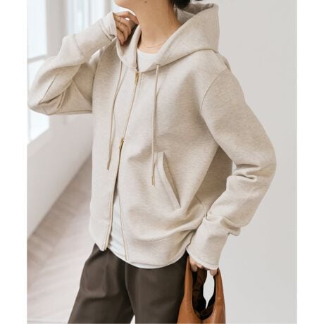 程よいハリ感で、立体的なシルエットが際立つストレッチジップフードパーカー。