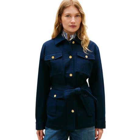 ステンカラータイプのフィールドジャケット。無駄な装飾を省いたデザインが、大人の余裕を感じさせます。ゴールドボタンで、アクティブなイメージに華やかさをプラス。すっきりと着用できるサイズバランスで、ボトムスのシルエットも選びません。付属ベルトの有無で着こなしに変化をつけることも可能です。