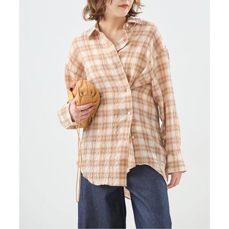 今シーズン注目のチェック柄シャツを立体的なカシュクールデザインに仕上げたモードなシャツ。