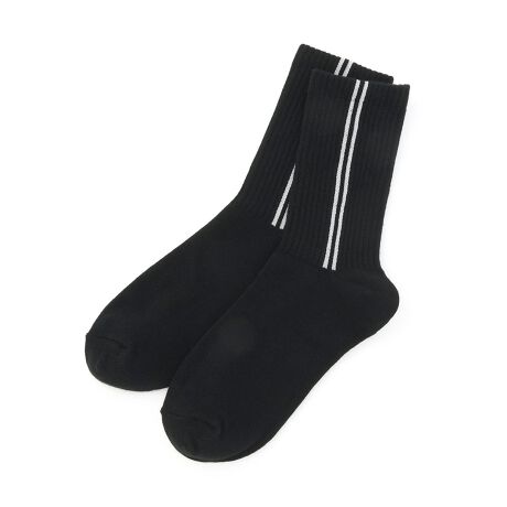 さまざまなシューズと合わせやすいクルー丈のソックスです。サイドラインがアクセントになり、コーディネートにスポーティーな雰囲気をプラス。伸びの良いストレッチ素材で、足のサイズに柔軟にフィットします。デイリーのコーディネートにはもちろん、アクティブなスタイルにもぴったりの一足です。