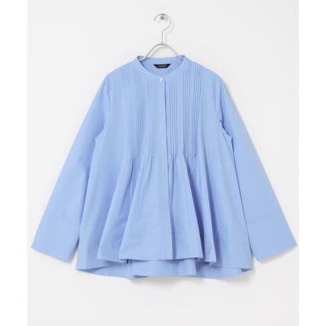 エアリーで軽い着心地と、程よいハリ感を兼ね備えた素材で仕立てた一枚。 ポリエステル混の生地はシワになりにくく、ブラウスの華やかさとシャツの扱いやすさを両立しました。ご自宅で洗濯可能なマシンウォッシャブル仕様で、デイリーに気兼ねなく愛用できるのも嬉しいポイントです。デザインの主役は、繊細なピンタック。 縦に何箇所も切り替えを入れることで、裾に向かって美しく広がるフレアシルエットを実現しました。裾の裏側を太めの見返しにすることで生地に張りを持たせ、ドラマチックな立体感をキープ。後ろ丈を長めに設定しているため、横から見た時のラインも抜かりなく綺麗に見せてくれます。身頃にデザインを凝縮している分お袖はあえてシンプルに引き算し、バランスのいいデザインに仕上げました。
