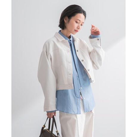 腕周りにドルマンデザインを施した、他にはない丸みのあるシルエットが目を惹く一着。 やや短めに設定した着丈が重心を高く見せ、ゆったりとした着心地ながらも自然なスタイルアップを叶えます。身幅やアームホールにたっぷりとしたゆとりを持たせているため、中にニットを着込むことも可能。 初春のレイヤードから初夏の軽やかな羽織りまで、季節を跨いで幅広く活躍します。カラーは、ソリッドで凛としたデニムブルーと、表情豊かなミックス感が魅力のニュアンスホワイトの2色をご用意しました。今季は、あえて落ち感のあるスラックスやマキシワンピースと合わせた、甘辛なミックススタイルを楽しむのがおすすめです。