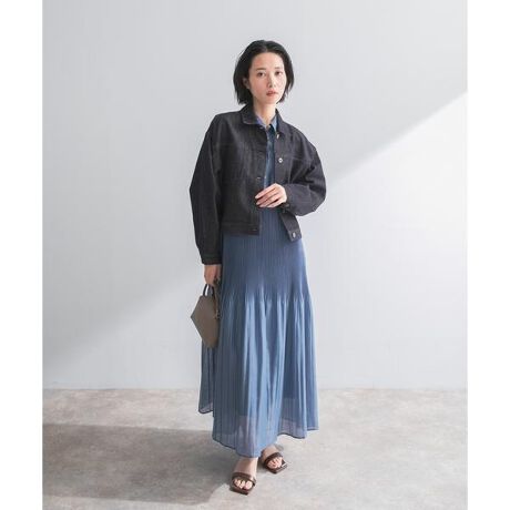 春らしい軽やかなシャツワンピースを、奥行きのある表情が美しいシアー素材で高級感たっぷりに仕上げました。 裾に向かって緩やかに消えていくプリーツデザインが、歩くたびにドラマチックなシルエットを描き出し、洗練された女性らしさを演出します。まだ肌寒い時期には、上からざっくりとしたニットを重ねてスカートのように見せるレイヤードスタイルがおすすめ。暖かくなってからは潔く一枚で着こなすのはもちろん、付属のインナーペチコートを抜いてパンツを重ねれば、旬なレイヤードスタイルも楽しめます。合わせるアイテム次第で、日常のお出かけから特別なシーンまで、季節を跨いで長く愛用いただける一着です。
