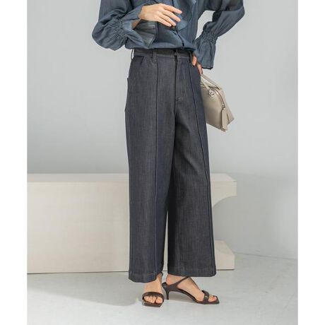 ハイウエスト設計にフロントのピンタックを施した、脚長効果抜群のデニムパンツ。 ワンウォッシュのソリッドな表情が知的な印象を与えつつ、ストレッチのきいた生地でストレスフリーな穿き心地を実現しました。落ち着いた濃いめのカラーリングで、デニムを綺麗めに着こなしたい方にも最適な一本です。今季は同色のデニムジャケットやブラウスと合わせた、奥行きのあるワントーンスタイルで楽しむのがおすすめ。カジュアルを格上げしてくれる、ワードローブに欠かせないアイテムです。