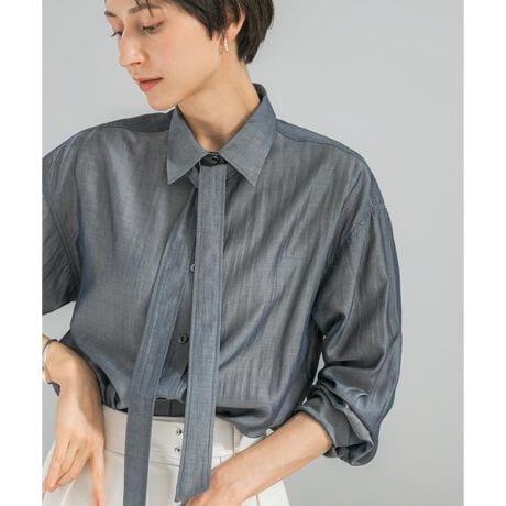 【旬の素材感で鮮度を上げる、ボウタイシアーデニムシャツ】