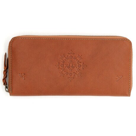 [型番:332462]ナチュラルな牛革に小鳥とお花モチーフの模様がかわいいお財布です。収納力がありながらも、「かるい革のお財布」に仕立てました。