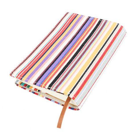 ストライプ生地を全面に使用した文庫本サイズのブックカバー。