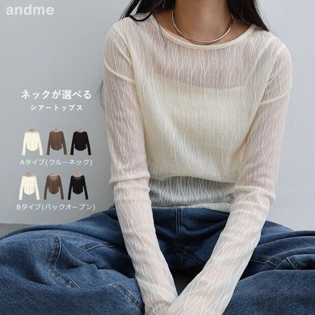【選べるネックデザイン】ウェーブ チュール シアー 長袖 トップス