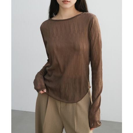 【選べるネックデザイン】ウェーブ チュール シアー 長袖 トップス