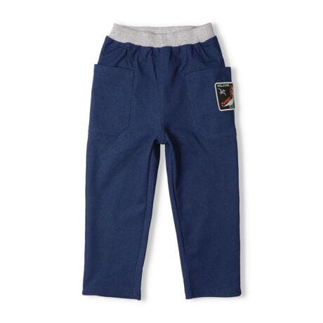 春のお出かけにピッタリなロングパンツ、長ズボン。ストレッチもきいているので履かせるのも楽ちんで、動きやすそう!!無地デザインに恐竜のワッペン付き。【アイテム】シンプル ベーシック 無地 カジュアル お洒落 オシャレ かっこいい かわいい 可愛い 普段着 お外着 お外遊び着 デイリーウェア お出かけ着 ロング丈 長丈 長ズボン フル丈 ボトムス 子ども こども 男児 男の子 ボーイズ キッズ ベビーサイズ トドラーサイズ 幼稚園 保育園 小学校 通園 通学 小学生 2026年春夏物新作 丸高衣料 ブラック 黒色 ネイビー 紺色 クレセント ダイナソー