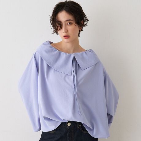 前中心のリボンまたはヒモで襟元の調整が可能。