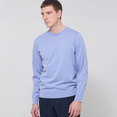 ベーシックなクルーネックのニットはテーラードの考えを取り入れ、立体的な設計に変更しています。身体の形状に合わせてパターン、分量感を細かく調整することでシルエット、着用感が大幅にアップデートされました。肩の接ぎの縫い目をゼロにする特殊な縫製仕様など、パターンと合わせて細部まで、着用感に拘りました。左胸にワンポイントでダンディマン刺繍がはいります。