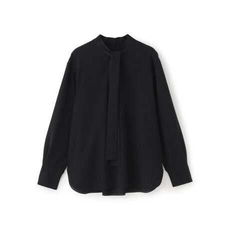 細めのボウタイがモードな印象のブラウス。