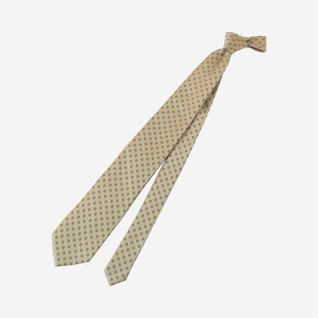 [型番:G1820704__]綾のベースに小紋を飛ばしたクラシックな印象のタイです。たっぷりとした糸使いでモチーフを立体的に表現してあり、クラス感が漂います。