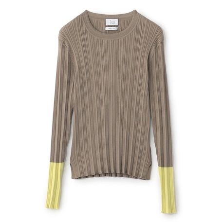 ランダムリブ編みにすることで程よいハリ感を持たせ、身体のラインに寄り添いながらも、