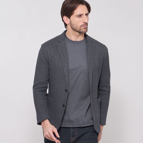 見た目はテーラードジャケットのように端正でありながら、着心地はカーディガン感覚で羽織れるニットジャケットです。極力芯地を使わず、編地特有の伸縮性を生かした仕様にしています。裏地は袖裏のみですので、初夏まで長い期間活躍するアイテムです。シングルブレステッド2ボタン、ノーベント、筒袖(袖釦なし)、フラップポケットのデザインです。