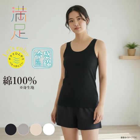 【満足(マンゾク)】 タンクトップ 無地 袖なし 冷感綿100% ひんやり ベタつきにくい