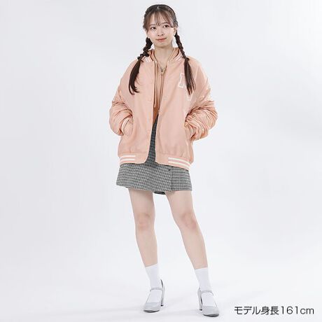 スポーティーなナイロン素材のスタジャン。◆ポイント・左胸にMQロゴアップリケ・左袖にロゴ刺繍・右袖にデイジーアップリケ・FRONTはドットボタン開き・後ろ袖〜後ろ身頃にギャザー入り・袖口と襟もとリブにライン入り・左右箱ポケット付き・中綿入りのキルト裏地・長袖◆コーディネートスカートに合わせて、キュートさをプラスするスタイリングがおすすめです。[型番:225-554814]