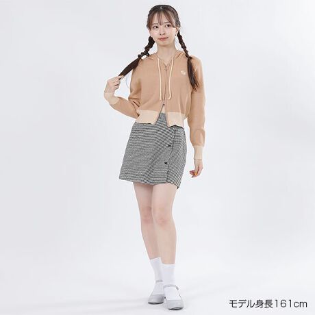 カジュアル過ぎないニット・パーカ。◆ポイント・左胸にデイジー刺繍・フードにロゴ刺繍・FRONTダブルジップ開き・リブ配色・フード紐付き・長袖◆コーディネートBACKスタイルもロゴが見えてキュート。短め丈でスタイルアップも叶います。[型番:225-704819]