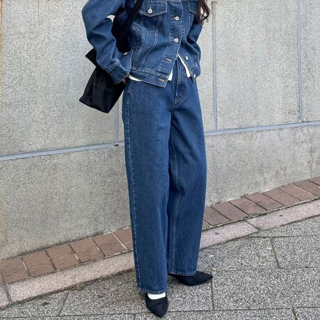・ワイドシルエットから裾に向かってすっきりとしたラインを描く、バランスの取りやすいワイドテーパードデニム