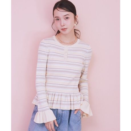 やさしい甘さを添える、大人のペプラムニットペプラムシルエットと裾のギャザーが、自然にウエスト位置を高く見せ、さりげなくスタイルアップを叶えてくれる一枚です。体にほどよくフィットしながらも締めつけ感がなく、リラックスした着心地が続きます。袖口のフレアデザインが動くたびにやわらかな表情を生み、手元まで女性らしい印象に仕上げてくれます。胸元のボタンがアクセントとなり、シンプルながらも表情のあるデザインです。パンツにもスカートにも合わせやすく、普段使いからお出かけまで幅広く活躍します。大人可愛い雰囲気を楽しみながら、無理なく体型カバーもできるのが嬉しいポイントです。透け感[なし]