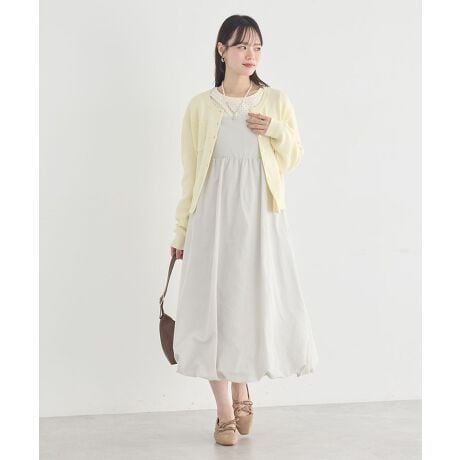 着るだけで可愛い、立体シルエットのバルーンワンピースふんわりとしたバルーンデザインが特徴で、シンプルながらも存在感のある一枚です。キャミワンピース仕様なので、カットソーやニットとのレイヤードがしやすく、季節ごとの着こなしを楽しめます。アジャスター付きの肩ひもは長さ調整ができ、バランスよく着用できるのが魅力です。背中部分のギャザーが程よく体に沿い、締めつけ感のない快適な着心地を叶えます。サイドファスナー付きで着脱が簡単なため、毎日のコーディネートにも取り入れやすいです。体型を選びにくく、さりげなくスタイルアップも期待できます。カジュアルシーンに映える大人可愛いデザインで、着回し力の高い頼れるアイテムです。透け感[なし]