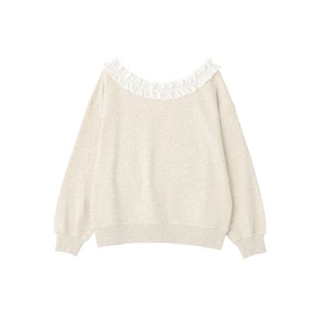甘さをひとさじ、カジュアルに映える大人フリルやわらかな裏毛素材を使用し、リラックス感のある着心地が魅力の一枚です。首元にあしらわれたフリルが顔まわりを明るく見せ、カジュアルなスウェットスタイルに大人可愛いアクセントを添えてくれます。オフショルデザインは程よい肌見せが叶い、女性らしさを引き立てながらも抜け感のある印象に仕上がります。身幅にゆとりがあり、体のラインを拾いにくいため、自然に体型カバーができるのも嬉しいポイントです。デニムやスカートと合わせるだけでコーディネートが決まり、普段使いからちょっとしたお出かけまで活躍します。着心地とデザイン性を両立した、毎日に寄り添うアイテムです。透け感[なし]