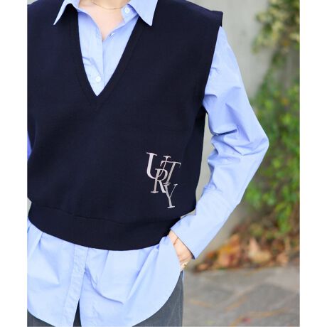 刺繍ロゴが目を惹くニットベスト。