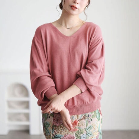 愛され華奢感をつくりだすVネックボリューム袖ハイゲージニット。オンオフ使えて着まわし力抜群のシンプルさ◎体型を拾わない身幅、ゆとりのある脇ぐり・ぽわん袖で窮屈感なく着用していただけます♪ぼわんっとした丸みが愛らしいボリューム袖がシンプルな装いに女性らしさを演出◎袖山のタックデザインが立体感をつくり自然に二の腕をカバー☆袖口と裾の切り替えが装いにメリハリをつけ着こなしをワンランクUPしてくれます!