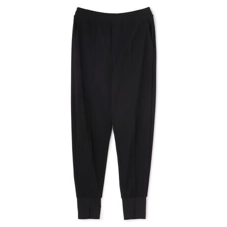 一度足を通したら手離せなくなるスタイリッシュなデザインと着心地の良さ、動きやすさを両立しています。縦のラインを強調するセンタープレスと裾リブに入ったスリットで、足を細くスッキリ見せてくれます。ウエストは内側に入った紐でサイズ感を調整でき、総ゴムなのではき心地も抜群です。全15サイズ展開で、自分にピッタリのサイズが必ず見つかります。