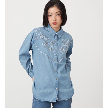 今期は、ウエスタン調のフラワーモチーフに「SOMETHING」のロゴを組み合わせた、特別なオリジナルコード刺繍をふんだんに施しました。フロントだけでなく、バックスタイルのヨーク部分にもコード刺繍を挟むことで、視線を上に集め、自然なスタイルアップ効果を発揮。全体のシルエットが間延びせず、奥行きのあるデザインに仕上がっています。